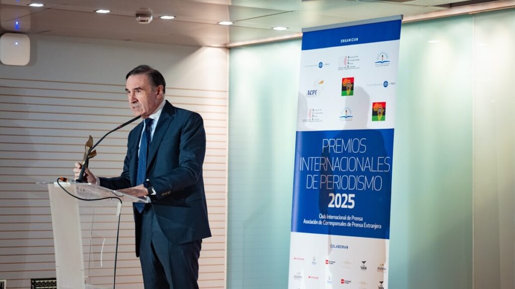 La entrega de los premios se inició con los galardones de la Asociación de Corresponsales de Prensa Extranjera, presidida por Armelle Pape Van Dyck, quien entregó el Premio Periodismo 2025 a El Español, periódico digital independiente fundado en 2015 y nacido en Madrid, que se ha posicionado como líder de audiencia en la prensa digital generalista en España, con una línea editorial descrita como “moderada y de calidad”, bajo la dirección de Pedro J. Ramírez. El propio Pedro J. Ramírez recogió el premio de manos de una Armelle Pape Van Dyck que defendió la independencia de la profesión periodística y criticó los abusos del poder por intentar controlarla.
