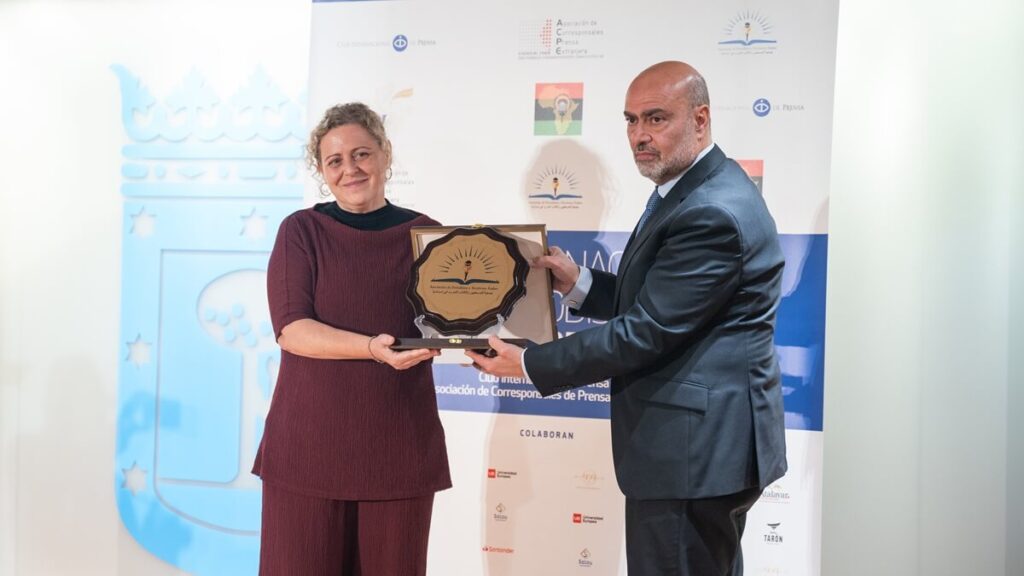 El propio Tarek Khedr entregó el premio a Paula Gil, directora de Médicos Sin Fronteras en España, quien señaló que han sido testigos de cómo “se nos ha deshumanizado”. “Las fuerzas israelíes nos humillan y deshumanizan”, indicó, haciendo referencia a Nour, responsable de Comunicación en la Franja de Gaza, cuya mayor frustración es “no poder contar historias de todos los gazatíes supervivientes del genocidio en Gaza llevado a cabo por Israel”. Paula Gil manifestó que los periodistas extranjeros no pueden entrar en Gaza, ni se permite la salida de gazatíes. La responsable de Médicos Sin Fronteras mostró su más “profunda gratitud” por el premio, “como reconocimiento al trabajo silencioso y persistente para que voces del sufrimiento y la dignidad sean escuchadas”. Paula Gil denunció que han muerto en Gaza ya más de 68.000 personas, 565 trabajadores humanitarios, 15 compañeros de Médicos Sin Fronteras y 250 periodistas por los ataques israelíes.